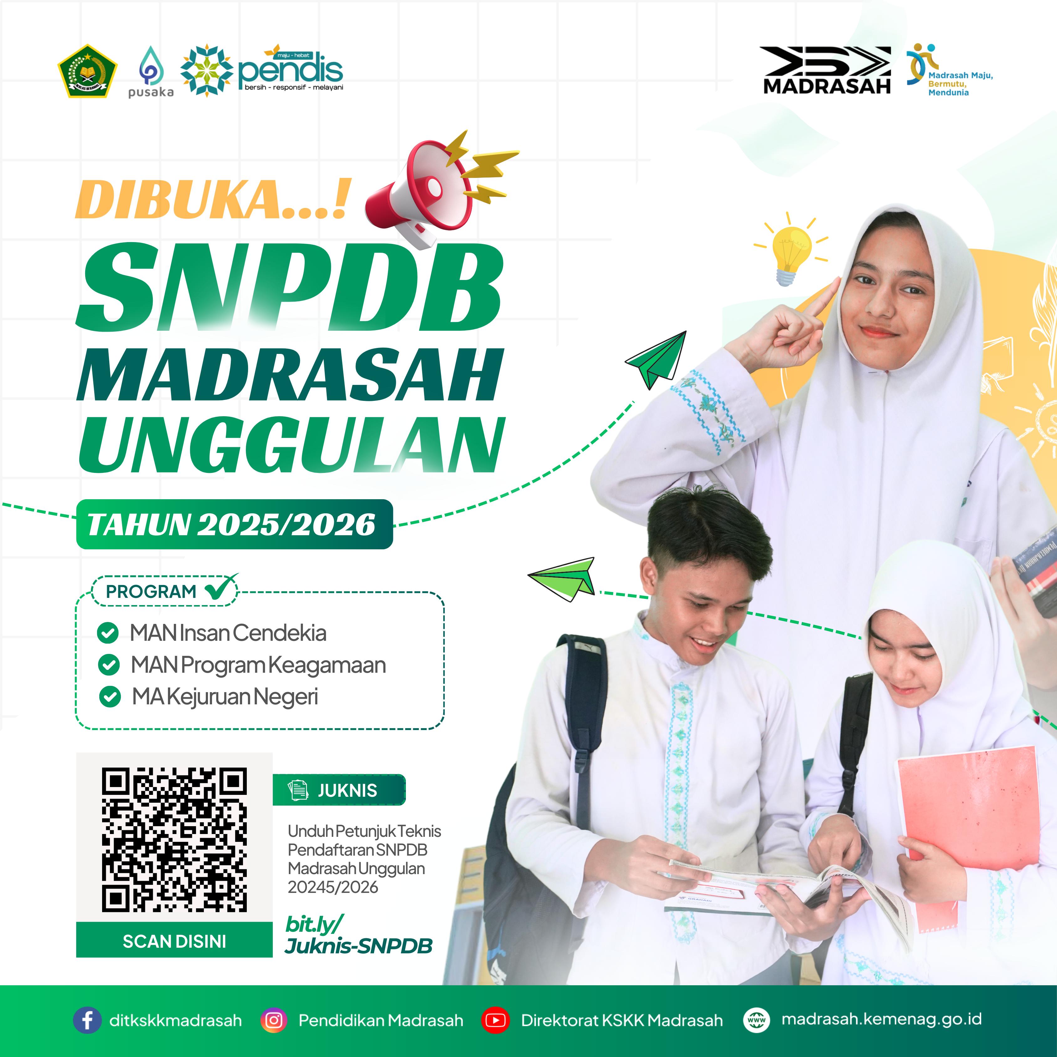 SNPDB Kabupaten Tambrauw MAN membuka kesempatan bagi putra-putri terbaik bangsa untuk menjadi bagian dari madrasah unggulan yang memadukan ilmu, iman, dan amal. Daftar sekarang dan wujudkan cita-citamu bersama kami!